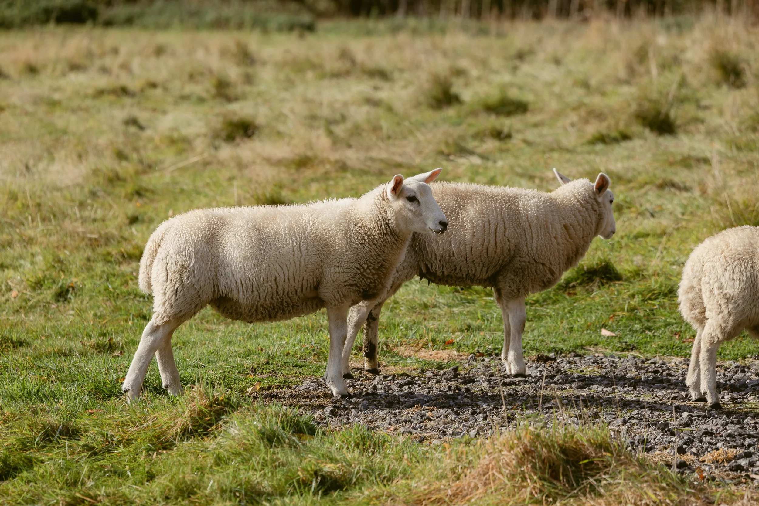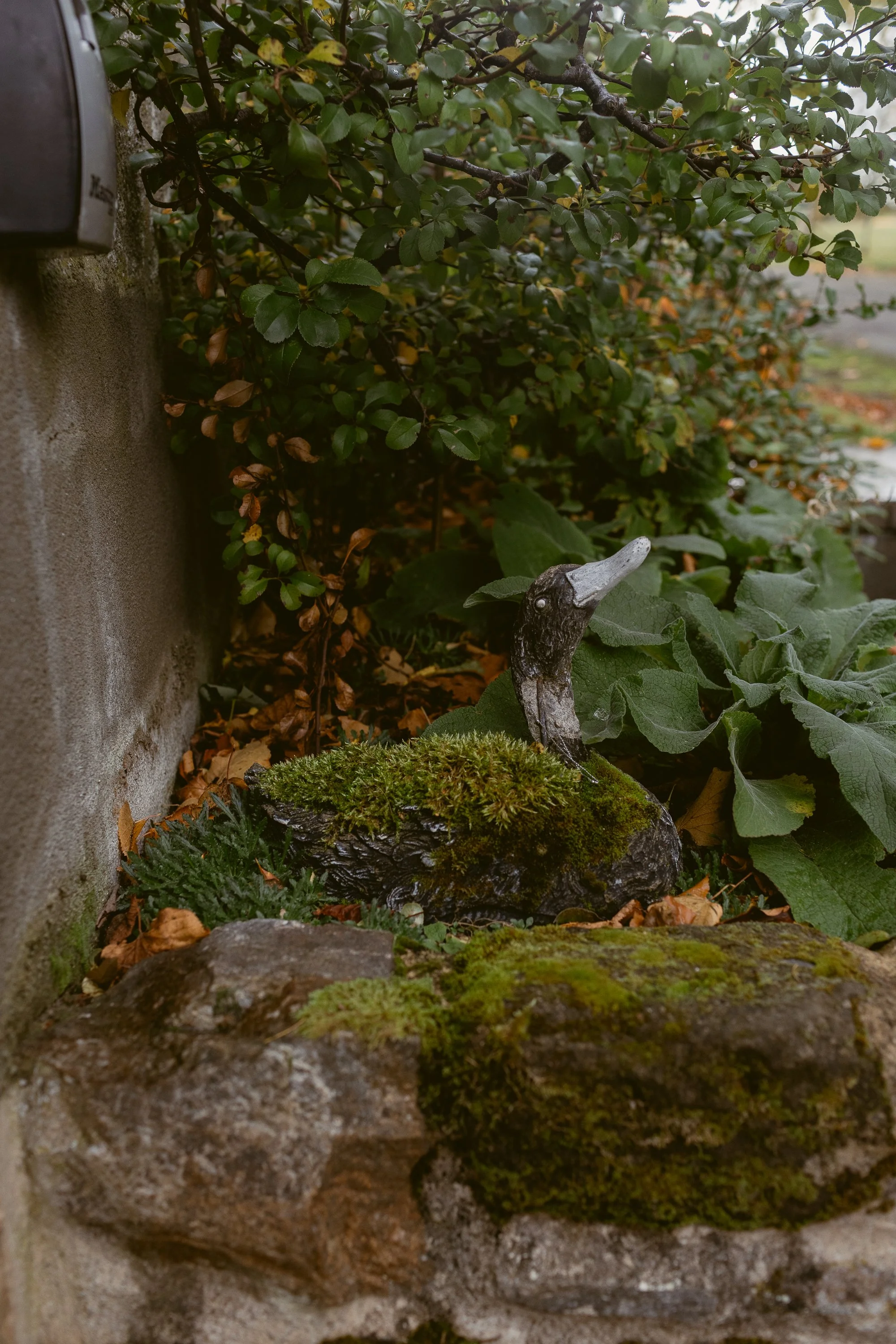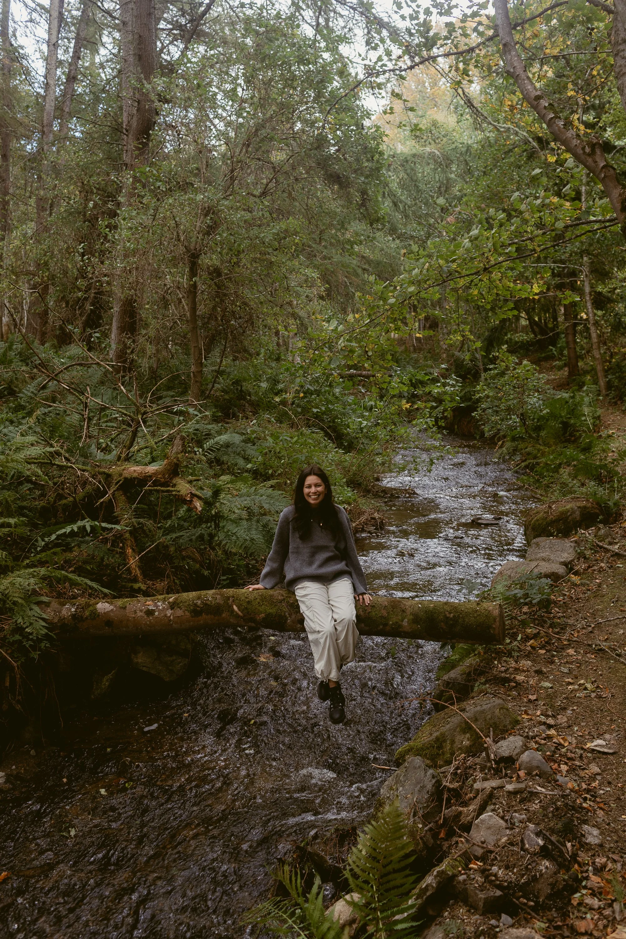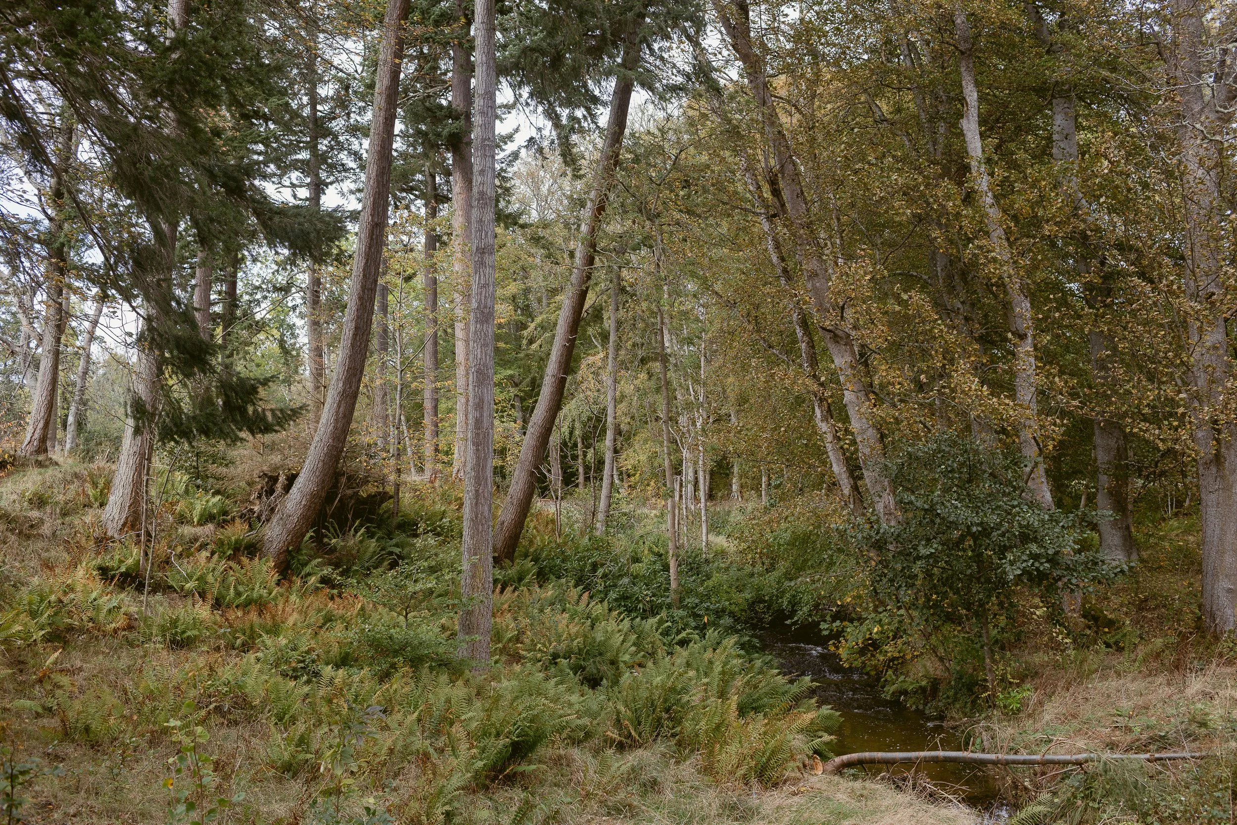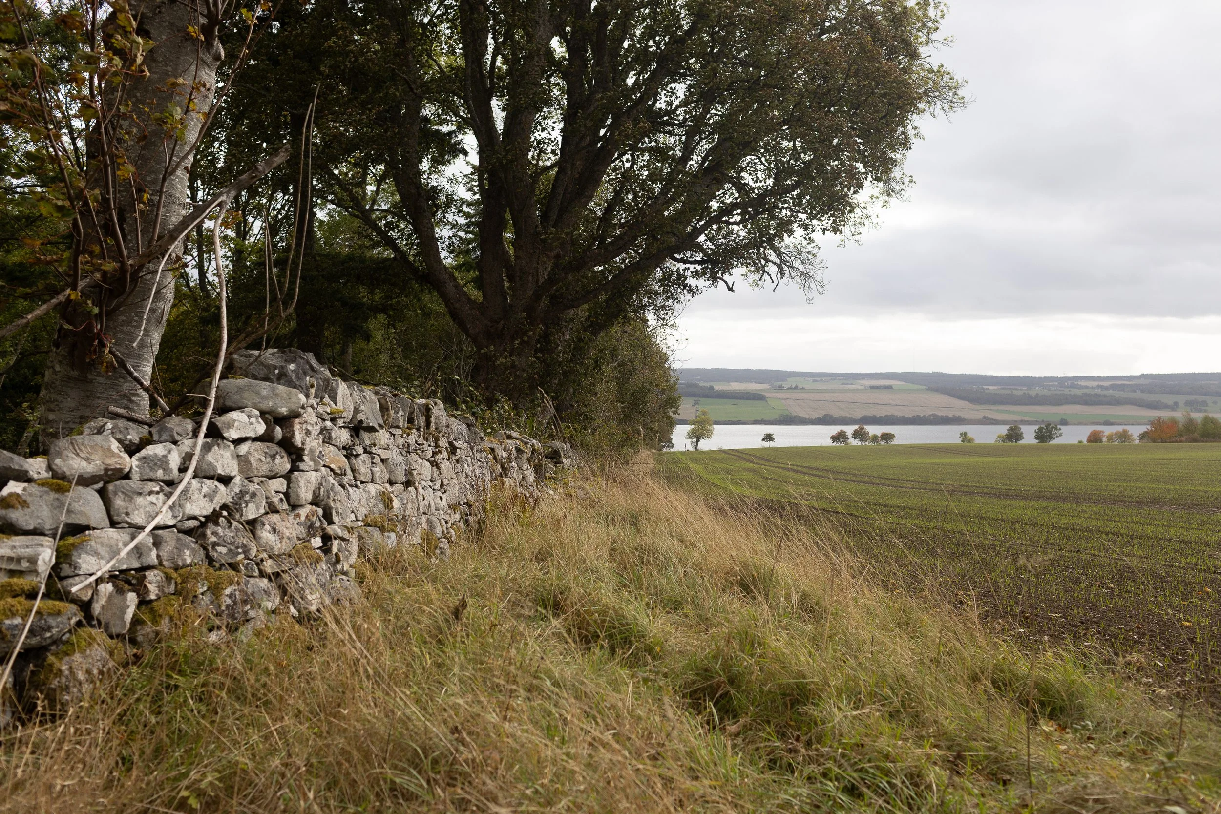 The cozy interior of our small apartment portion of the castle had a warm, English-countryside charm. The cream-colored kitchen with oak countertops and a garden-view window over the sink was what dreams are made of. Our bedroom had double doors that opened to a scene straight out of The Secret Garden. Every part of the courtyard had something to see, but Ethan’s favorite spot was a doorway that led to the oldest part of the castle, featuring a centuries-old memorial stone and a defensive tower fitted with keyhole gun loops.. Beyond the castle walls, open fields stretched out with fruit trees and sheep grazing in the pasture. One of my favorite moments from our trip was the hours we spent hiking their land, following a creek that wound through forests, over bridges, and past old stone walls.